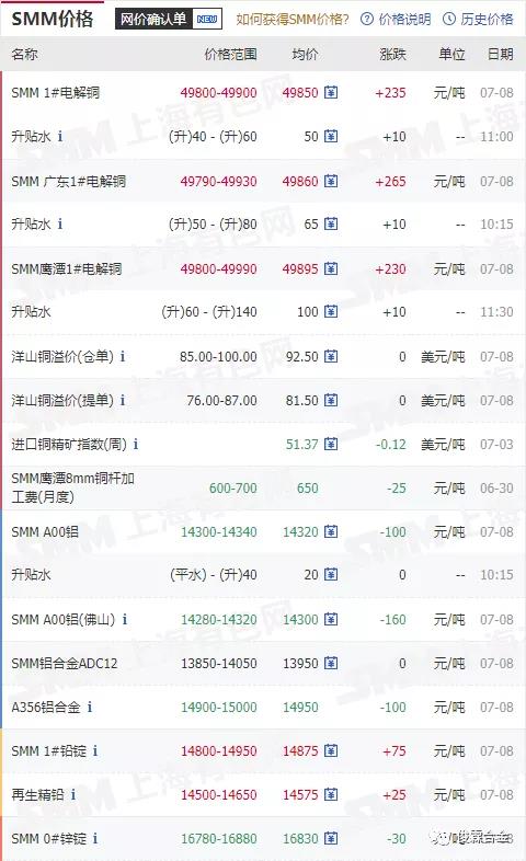 俊霖合金解讀:7月8日有色金屬行情