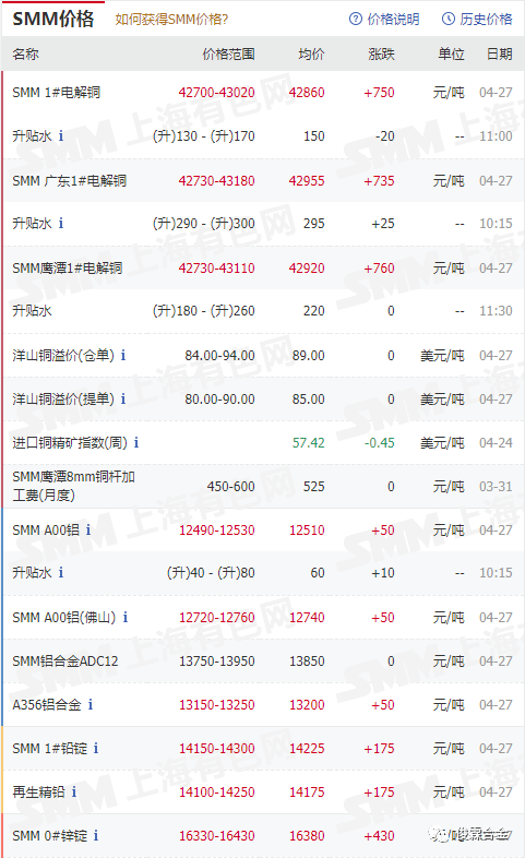 俊霖合金解讀:4月27日有色金屬行情
