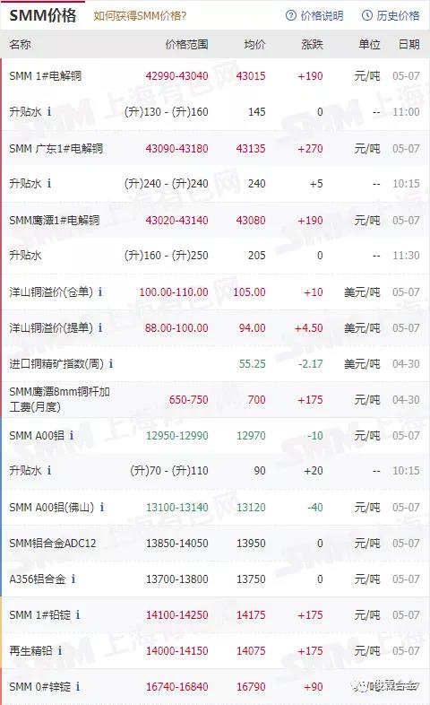 您現在所在位置:首頁?新聞資訊?行業(yè)新聞-俊霖合金解讀:5月7日有色金屬行情行業(yè)新聞