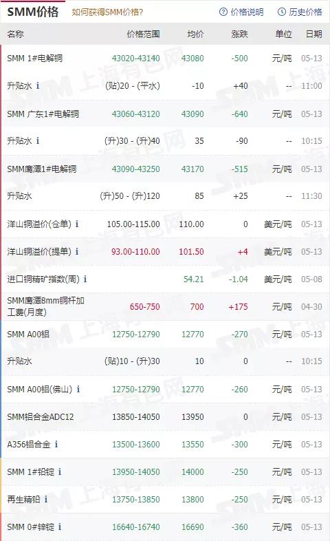 您現(xiàn)在所在位置:首頁?新聞資訊?行業(yè)新聞-俊霖合金解讀:5月13日有色金屬行情行業(yè)新聞