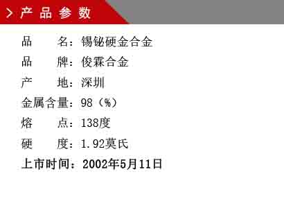 您現(xiàn)在所在位置:首頁(yè)?產(chǎn)品展示?硬金合金?錫鉍硬金合金錫鉍硬金合金